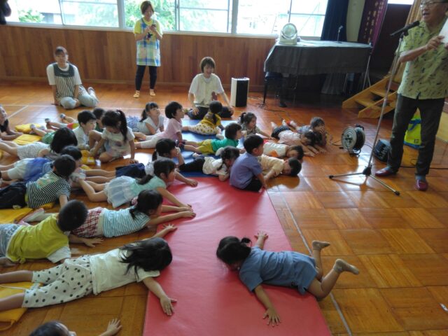 三四郎さんの読み聞かせが始まると、自然に体が動くキッズ保育園のみんなです。