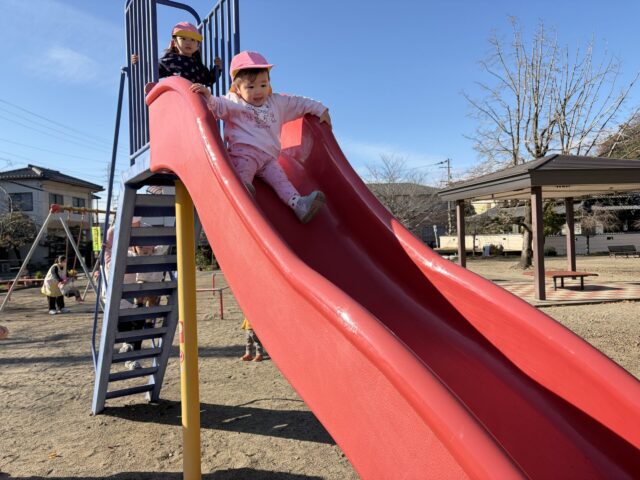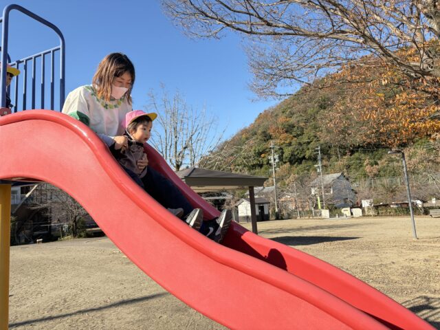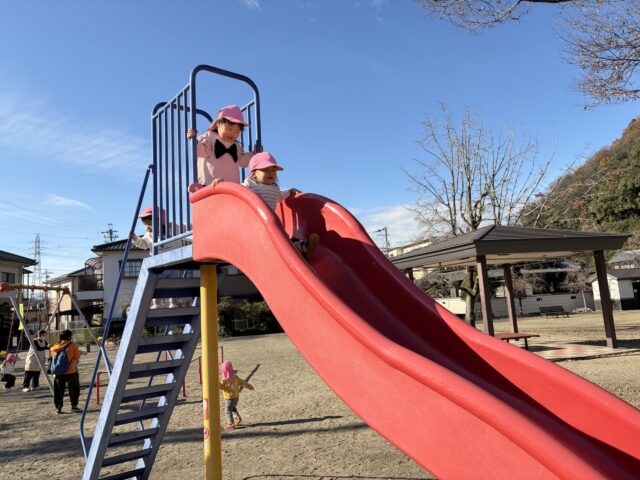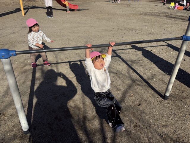 滑り台、鉄棒、ブランコと次々に遊んでいました。
