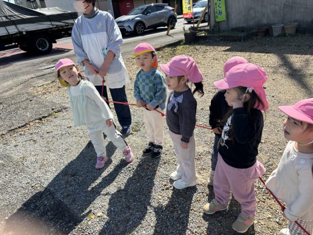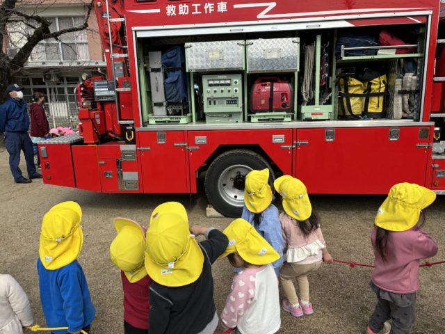 3月4日(月)避難訓練があり、中濃保育園に消防車が来ているという事で・・見学に。