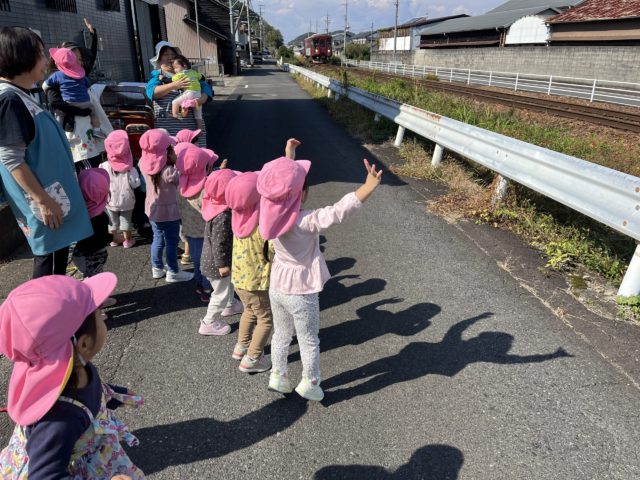 「カンカンカン」と踏切の音が聞こえて「あー!電車きた~」