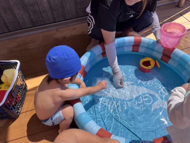 プール遊びが始まった時は、初めてのプール遊びで泣いてしまう子もいましたが、最後はみんな楽しく
