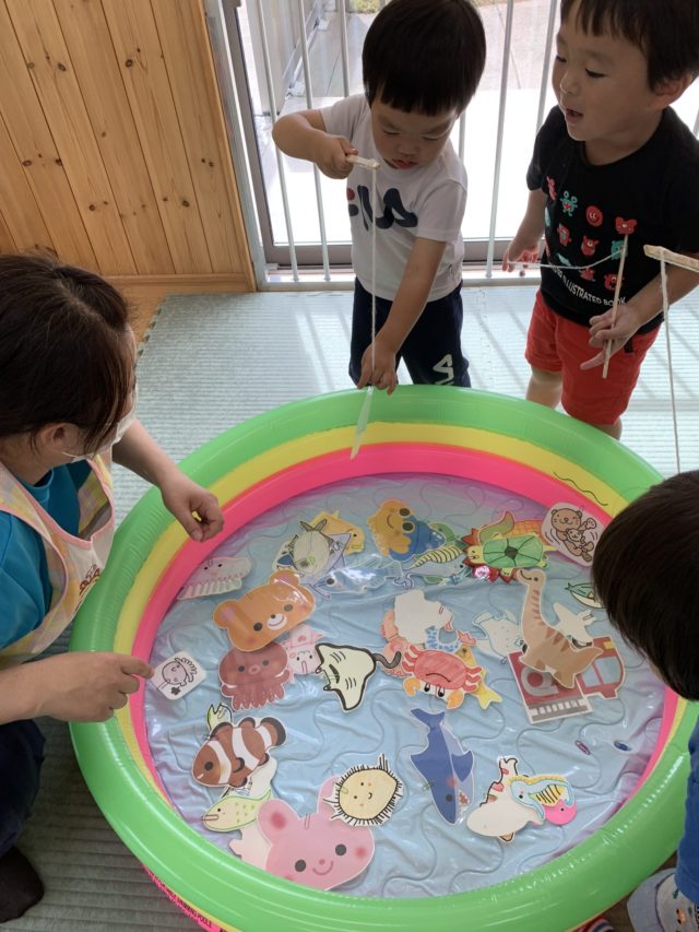 今日はお部屋で釣り遊びをしました。前回は魚釣りをしてみんなとても楽しんで参加できました。