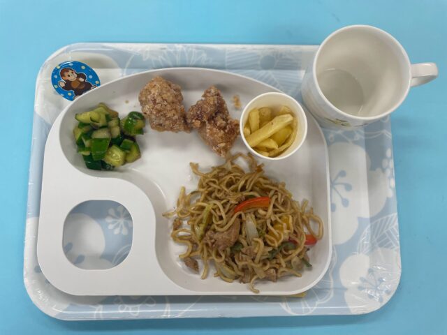 子どもたちから「焼きそばだ!やったー!!」「からあげだ!」「フライドポテトだ!大好き!」と食べる前から喜んでくれました!