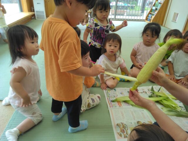 今日はみんなでとうもろこしの皮むき体験をしました🎵