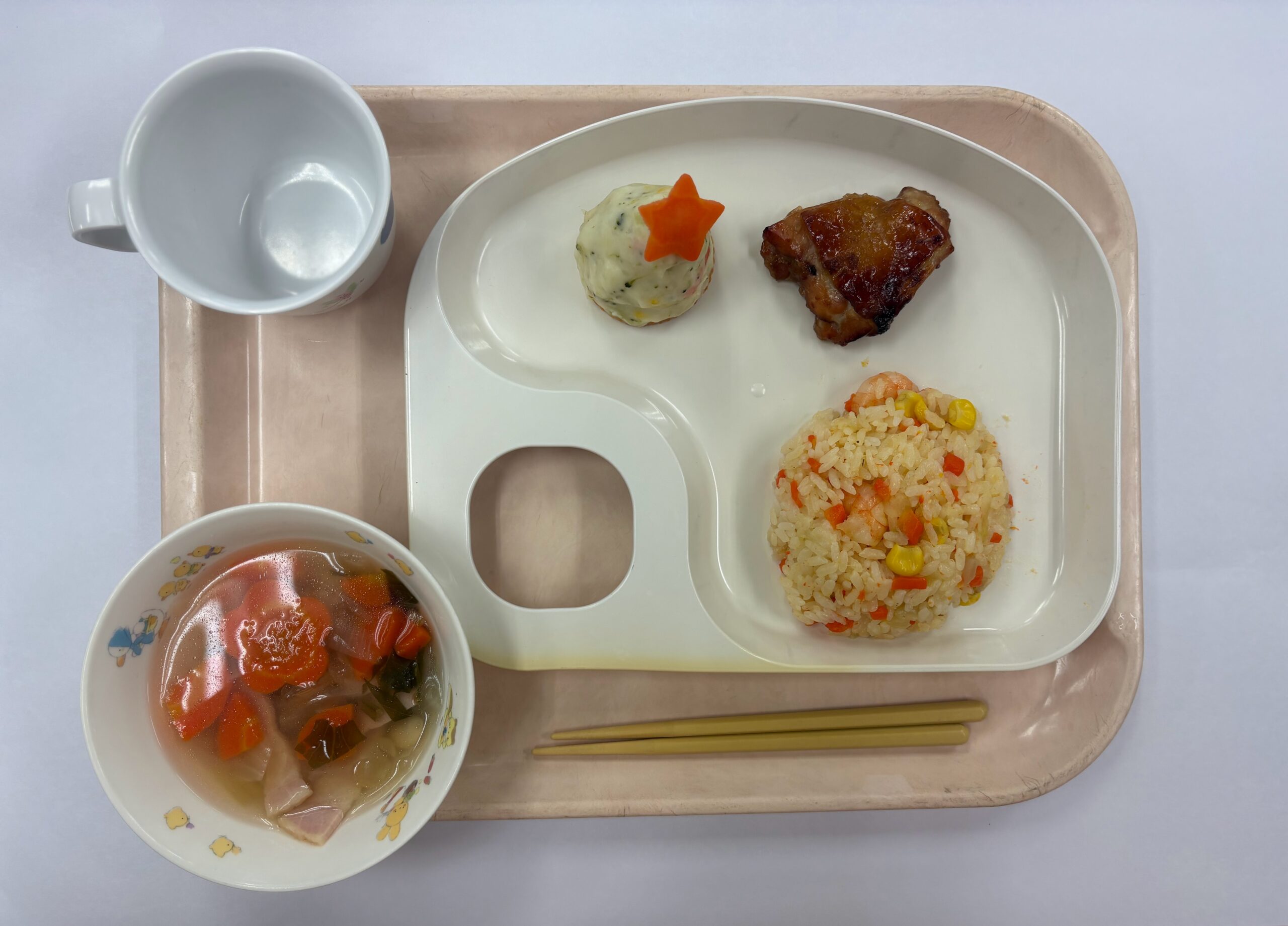 エビピラフ・ローストチキンとても人気でよく食べてくれました😋