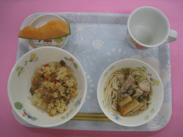 保育園では炊き込みご飯タイプの「クファジューシー」を作りました。