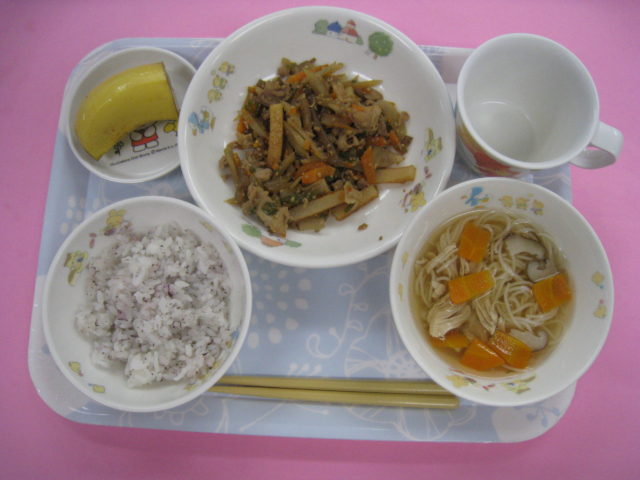 特に栄養きんぴらにはごぼう・にんじん・ピーマンがたっぷり入っていますが甘辛い味付けで、人気でした♪