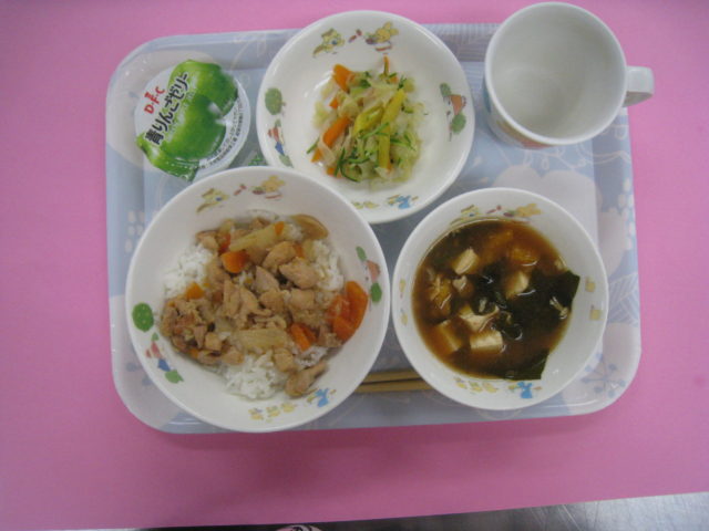 焼き鳥丼は、鶏肉・にんじん・玉ねぎが入っていて少し甘めの味付になっているのでみんなたくさん食べてくれました🎶