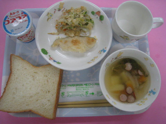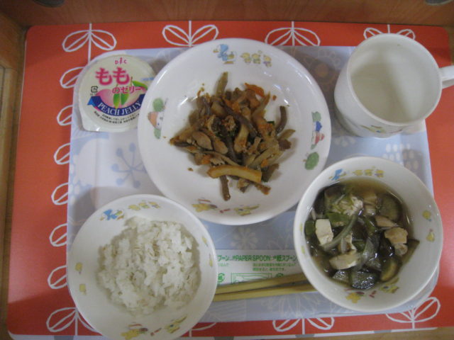鶏肉・大豆・にんじん・こんにゃく・さつまいもが入っていてみんなよく噛んで食べてくれました☺