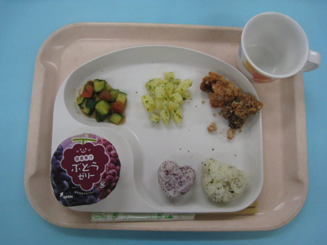 みんなが好きなメニューで、ゆかりおにぎり・菜飯おにぎり・鶏のから揚げ・青のりポテトにしました!