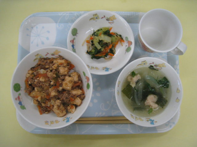 麻婆豆腐丼、ごはんが良く進む味つけでたくさん食べてくれ