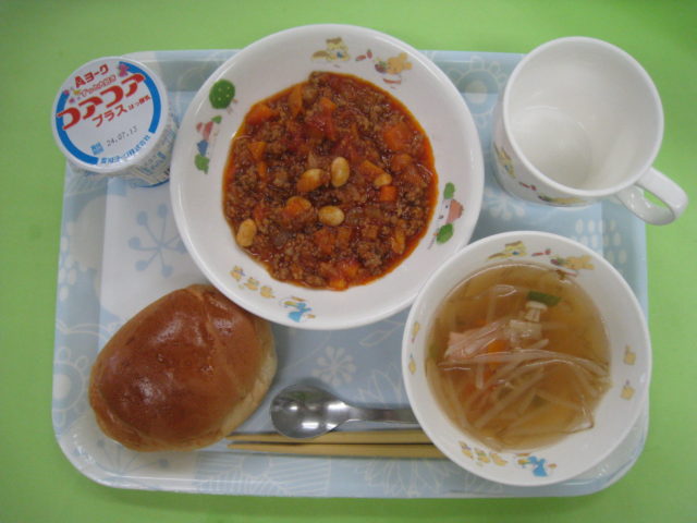 チリコンカーンをパンにつけて楽しみながらたくさん食べてくれました!!