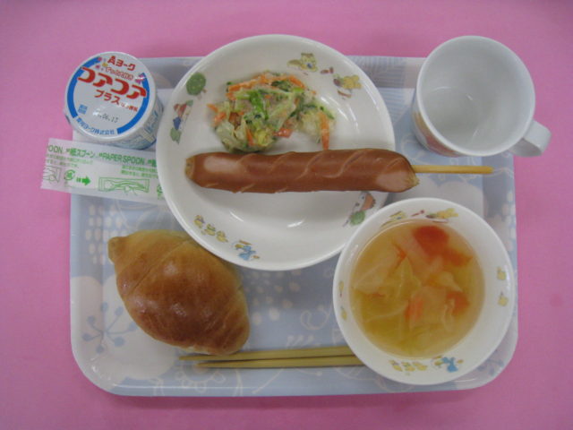 野菜スープの中の春雨、つるっとした食感を楽しんでくれたようです!(^^)!