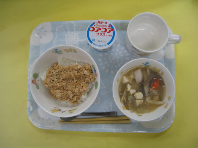 いつもは煮物に入っているひじきや大豆。煮物は大好きでよく食べますが、ごはんに混ざっていると抵抗がある子もいたようで、好きな子と苦手な子がいました。