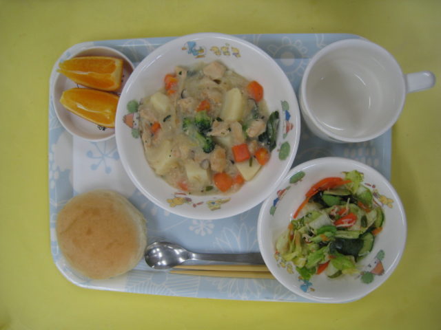 クリームシチューは具沢山で、野菜もたっぷり入っています。