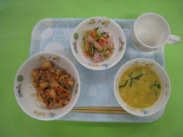 大人気のスタミナ丼🎶運動会の練習もあり、お腹が空いていたようでよく食べていました(*^^*)