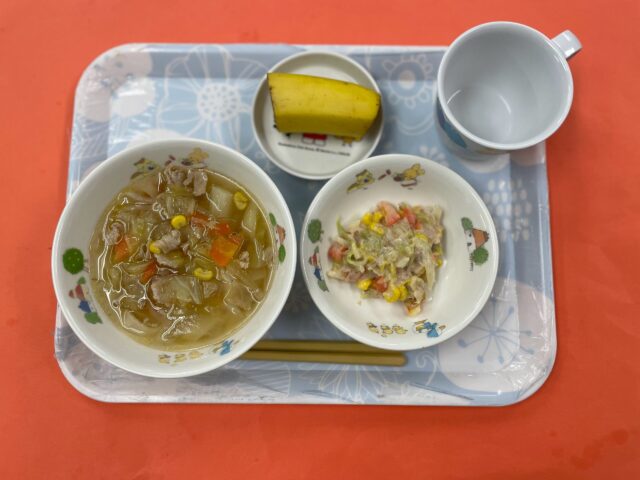 ちくわの磯辺揚げとみそ汁が人気でたくさんおかわりをしてくれました😋