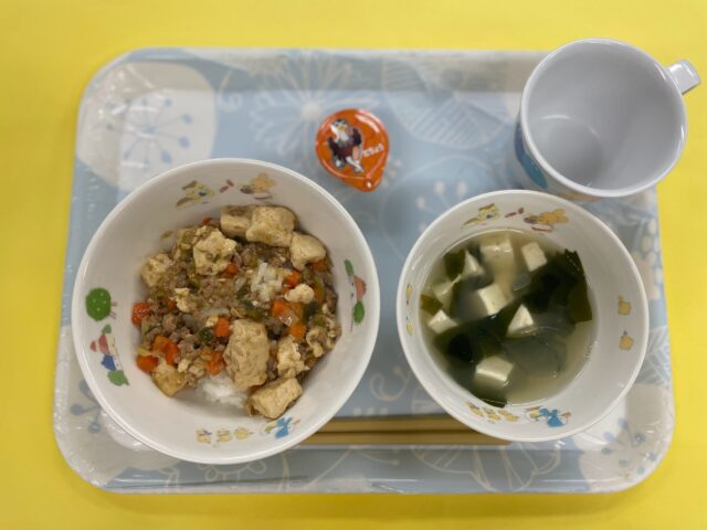 マーボーカレー丼はいつものマーボー豆腐にカレー粉を足したもので、食欲もマシマシ!