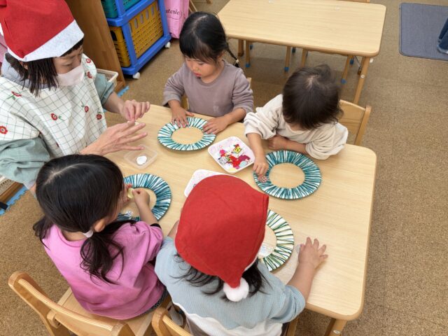 親子でクリスマスリースに飾りつけ🌟🎁