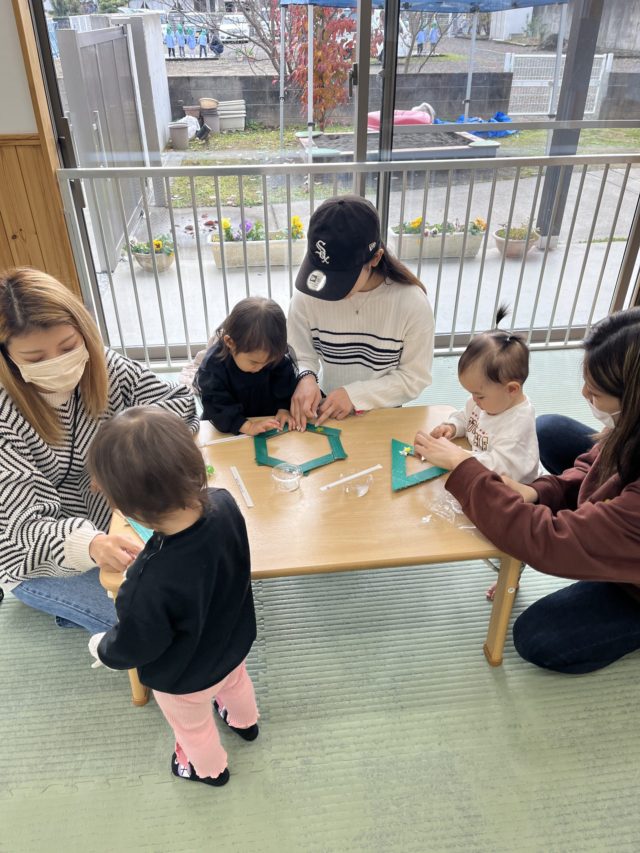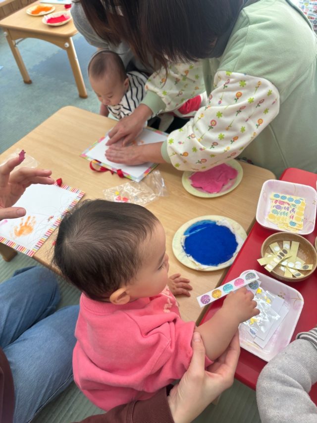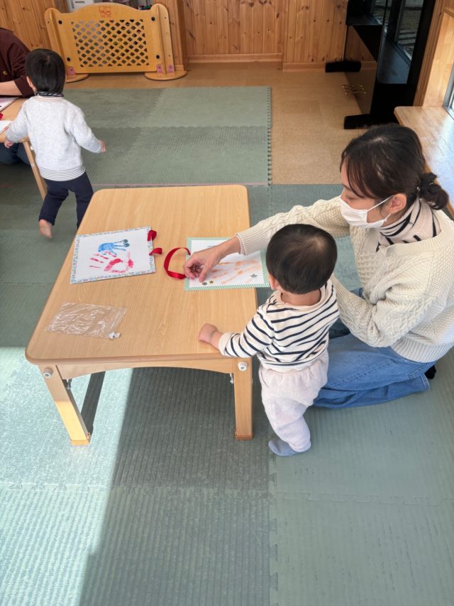 親子で手形をとって、台紙の飾り付けを楽しみました。