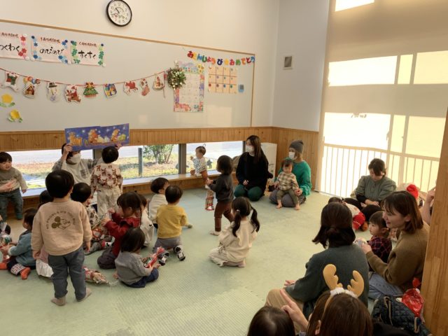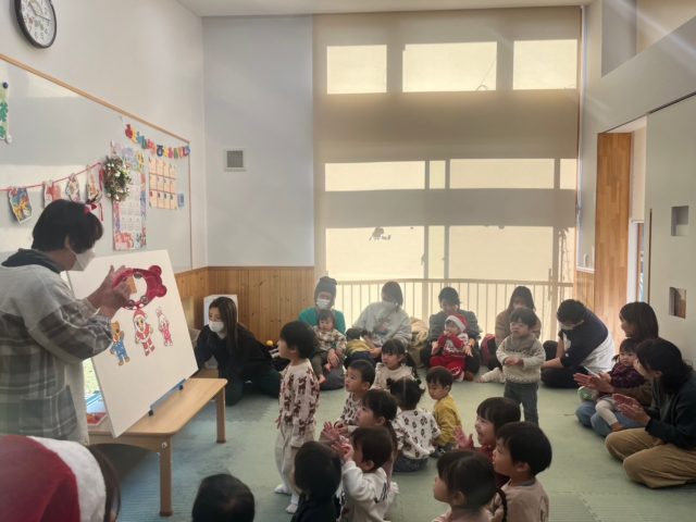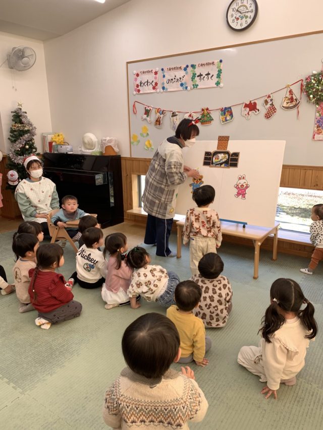 一緒にパネルシアターを観たり、クリスマスの音楽に合わせて楽器遊びを楽しみましたよ。